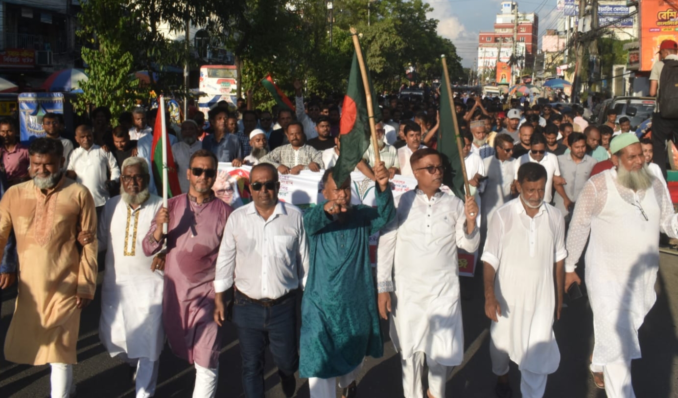 এসময়ে সদর থানা বিএনপি ও অঙ্গসংগঠনের নেতাকর্মীরা ব্যানার ফেস্টুনে সু- সজ্জিত হয়ে সাউন্ড সিস্টেম এবং ঢাক ঢোল পিটিয়ে শ্লোগানে শ্লোগানে প্রকল্পিত করে তোলে পুরো শহর।