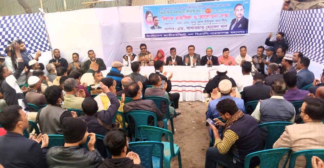 নারায়ণগঞ্জ মেইল: বিএনপির প্রতিষ্ঠাতা প্রয়াত সাবেক রাষ্ট্রপতি জিয়াউর রহমানের ৮৭তম জন্মবার্ষিকী উপলক্ষ্যে নারায়ণগঞ্জ মহানগর বিএনপি উদ্যোগে দোয়া মাহফিল ও আলোচনা সভায় অনুষ্ঠিত হয়েছে।