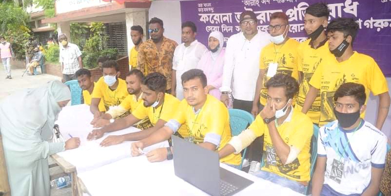 নারায়ণগঞ্জ মেইল: মহামারী করোনাভাইরাসের সংক্রমণ থেকে মুক্তির লক্ষ্যে বর্তমান সরকারের গণশিক্ষা কার্যক্রমকে সফল করতে নারায়ণগঞ্জ সিটি করপোরেশনের আওতাভুক্ত ১৩ নং ওয়ার্ডের আদর্শ স্কুল টিকা কেন্দ্রে হেল্প ডেস্ক স্থাপন করেছে ১৩ নং ওয়ার্ড স্বেচ্ছাসেবক লীগের নেতাকর্মীরা। শনিবার (৭ আগস্ট) সকাল থেকে নারায়ণগঞ্জ মহানগর স্বেচ্ছাসেবক লীগের সাধারণ সম্পাদক দুলাল প্রধানের নির্দেশনা এবং সার্বিক তত্ত্বাবধানে দিনব্যাপী টিকাকেন্দ্রে আসা সাধারণ জনগণকে অনলাইন নিবন্ধনসহ সকল প্রকার সহযোগিতার লক্ষ্যে ভলান্টিয়ার সার্ভিস দিয়েছেন তারা।